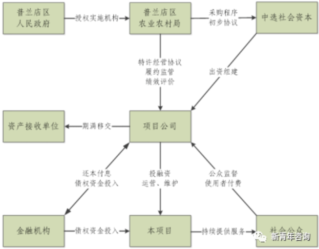 經(jīng)過多次溝通,區(qū)政府決定采納該建議,并委托新青年咨詢?yōu)楸卷?xiàng)目提供全生命周期咨詢服務(wù),咨詢服務(wù)內(nèi)容主要包括:盡職調(diào)查、指導(dǎo)資產(chǎn)評估、財(cái)務(wù)測算、實(shí)施方案編制、特許經(jīng)營協(xié)議編制及簽訂、融資對接等咨詢服務(wù)。