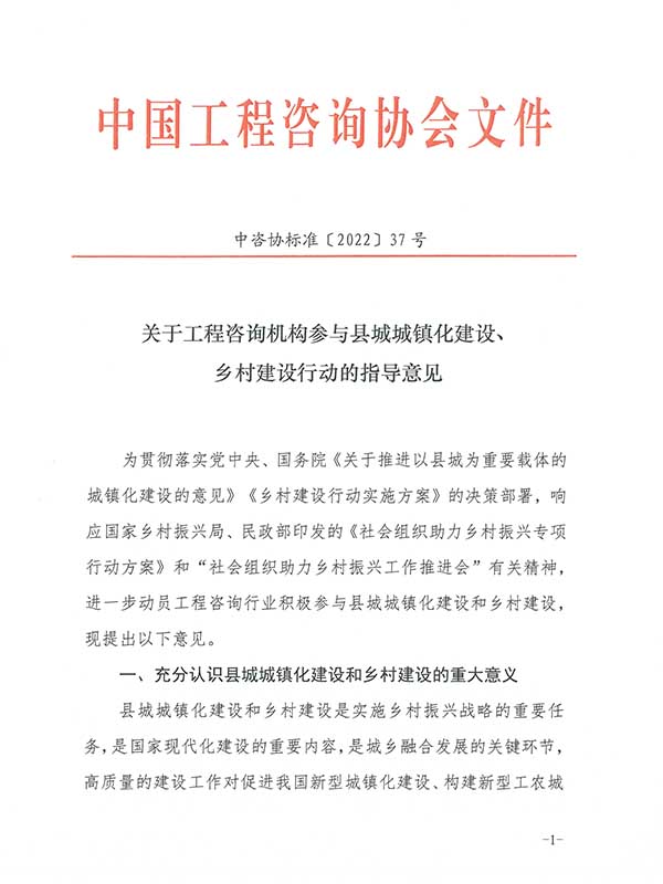 關于工程咨詢機構參與縣城城鎮(zhèn)化建設、鄉(xiāng)村建設行動的指導意見