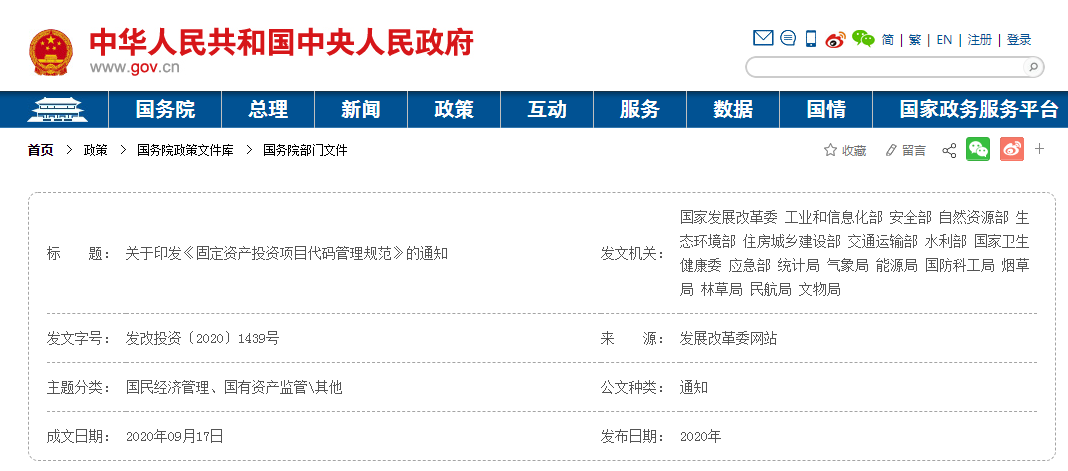 關于印發(fā)《固定資產投資項目代碼管理規(guī)范》的通知